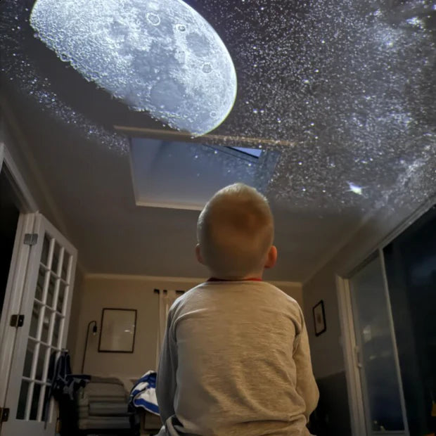 Slide the film disc into the LunaBeam™, tilt it to your preferred angle, and power it on. The universe comes alive instantly.